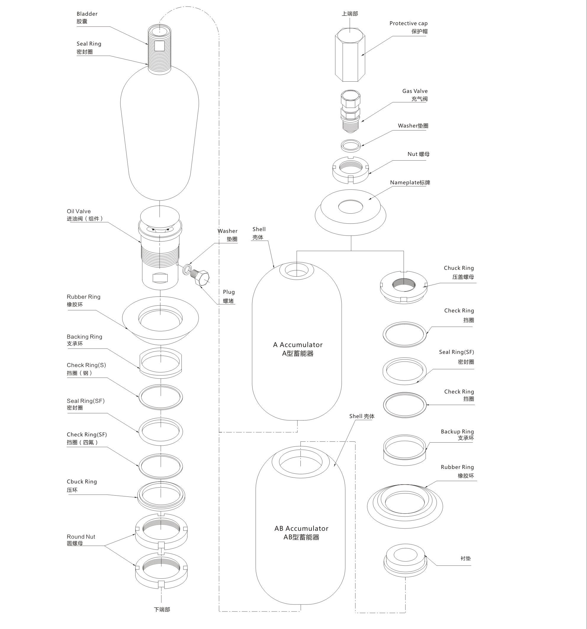 Bladder accumulator assembly schematic drawing