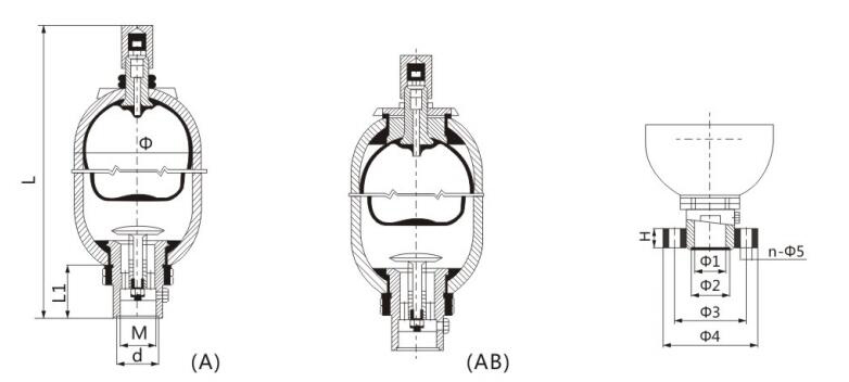 2. When the user chooses the big diameter series accumulator of the same capacity, please note the diameter on the back of the model and code. For example, there are two kinds of pipes for a 40L accumulator, one is $219 and the other is $299, if the user need$299 diameter, working pressure: 31.5MPa, cylinder structure: big opening/top repair, medium: hydraulic oil, connection way: thread. this kind of accumulator should be expressed as following: NXQ-AB-40/31.5-L-Y(Φ299).